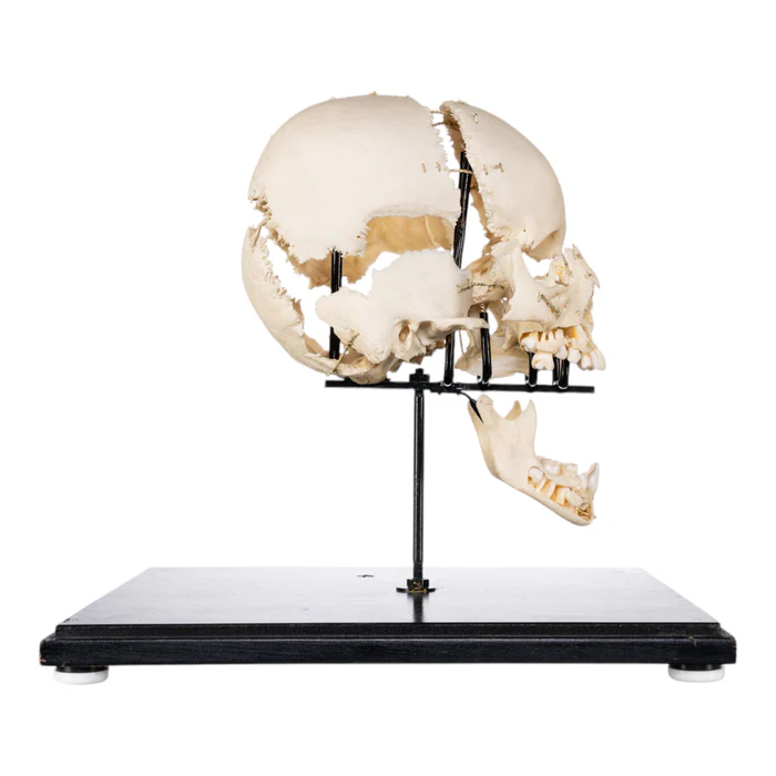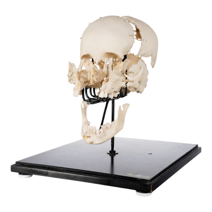 Discover our real human exploded skull on stand. This specimen serves as a true, real human skull that displays every cranial bone in clear detail. It works perfectly for medical studies, classrooms, museums, or personal collections. In addition, this model provides a realistic skull display that brings human anatomy to life.