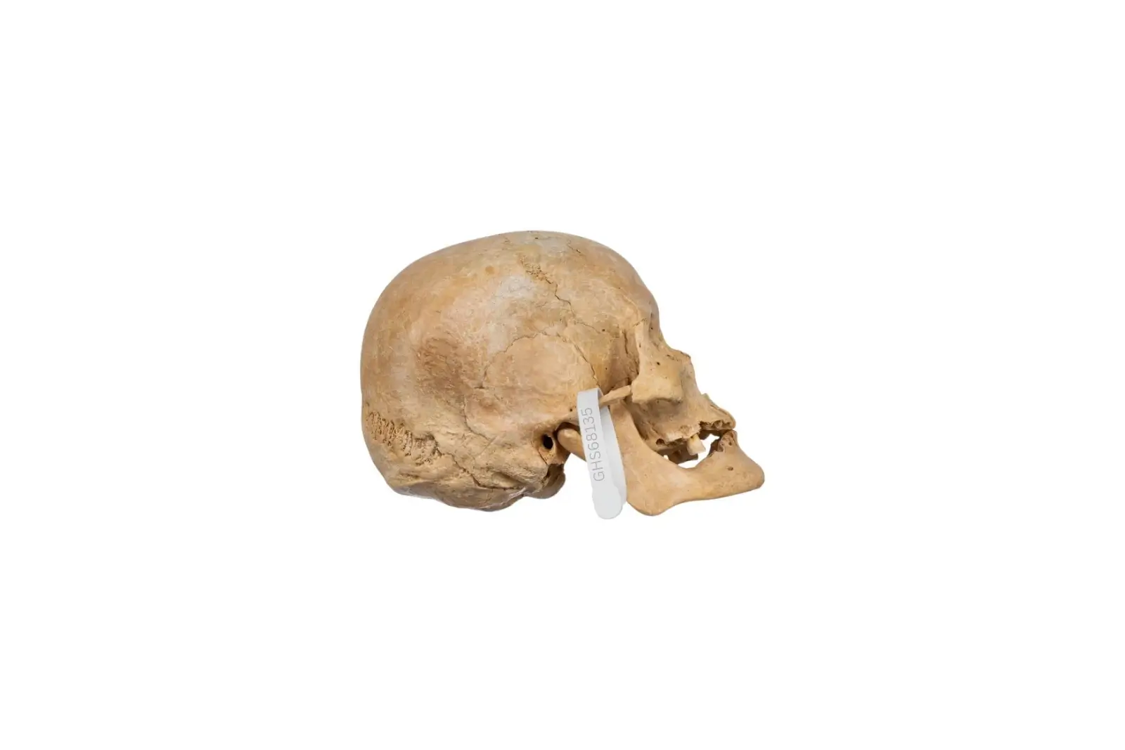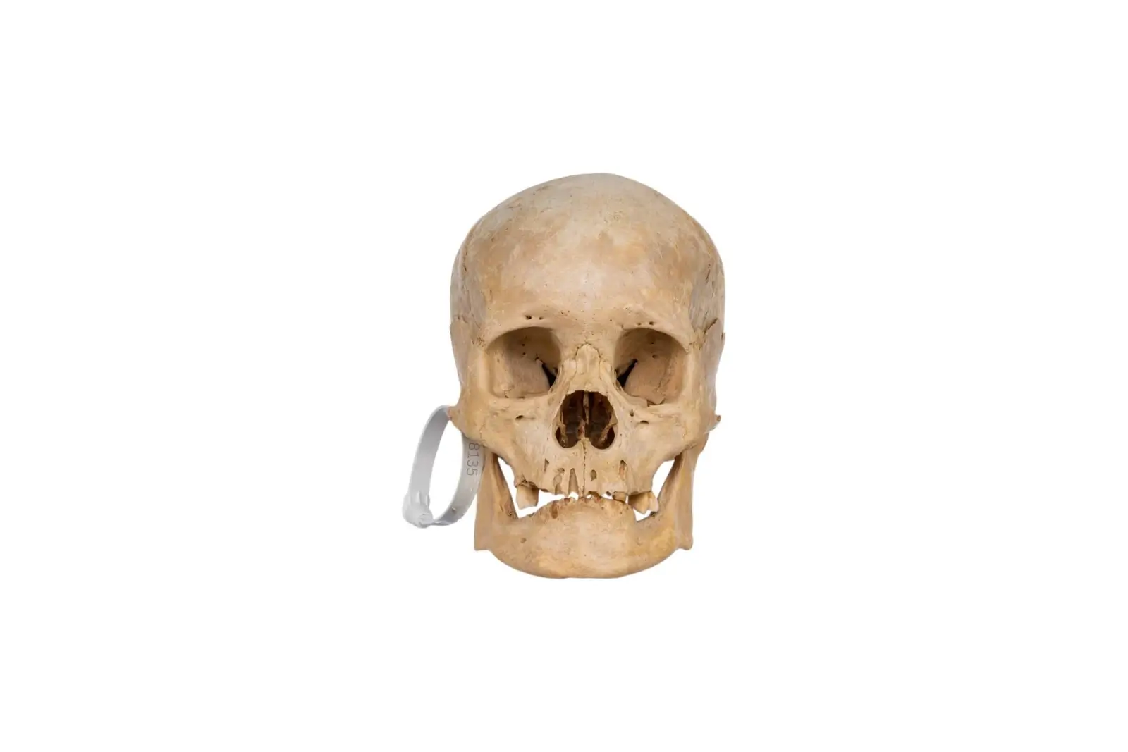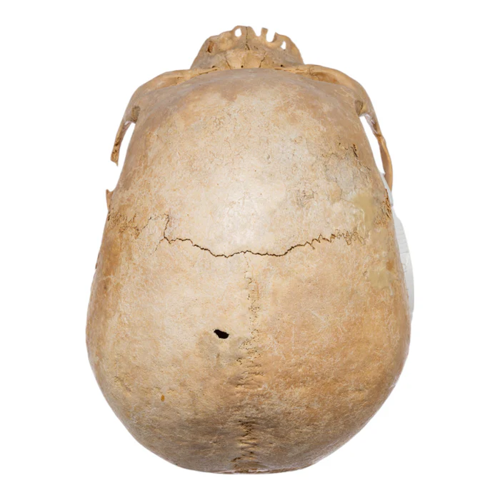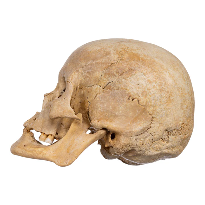 - Frontal Bone Damage: The front of the skull shows natural signs of wear.